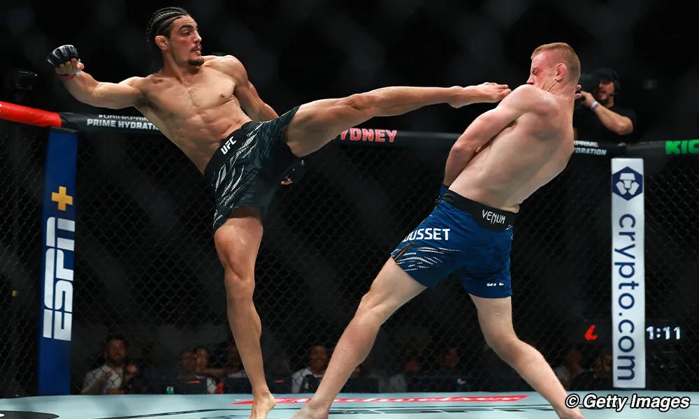 Mauricio Ruffy may be able to match the savvy defensive lean backs that Fiziev likes to do, but the Brazilian operates out of a wider stance than his counterpart, which could, in theory, open his legs and body a lot more as a target.